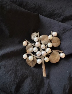 ペクオクサ作*gold leaf ×pearl ブローチ&チョーカー(B797-pe-10)